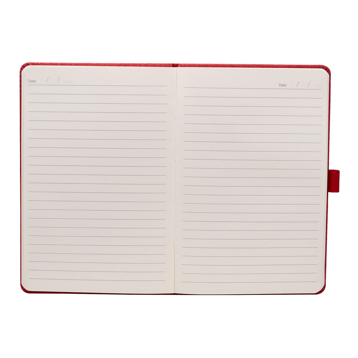 Libreta con 80 hojas de raya. Incluye elástico para cerrar, separador de hojas y elástico para bolígrafo.
