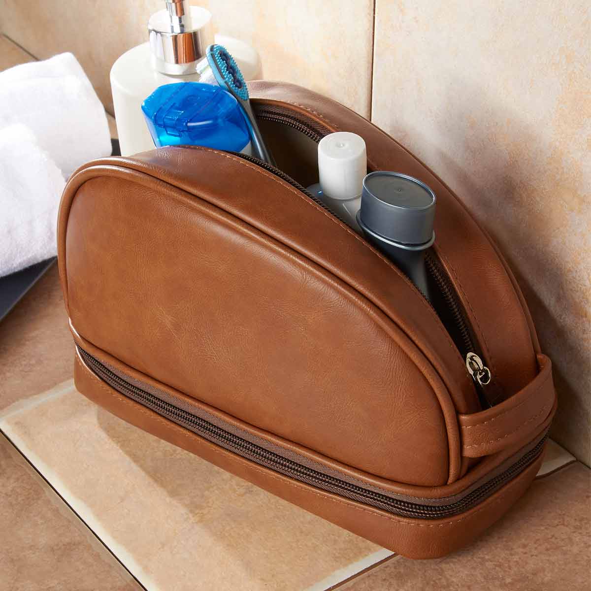 Neceser con asa. Compartimento principal e inferior con cierre.