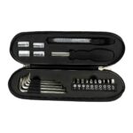 Contiene desarmador con 16 puntas y 8 dados diferentes e intercambiables. Incluye estuche.
