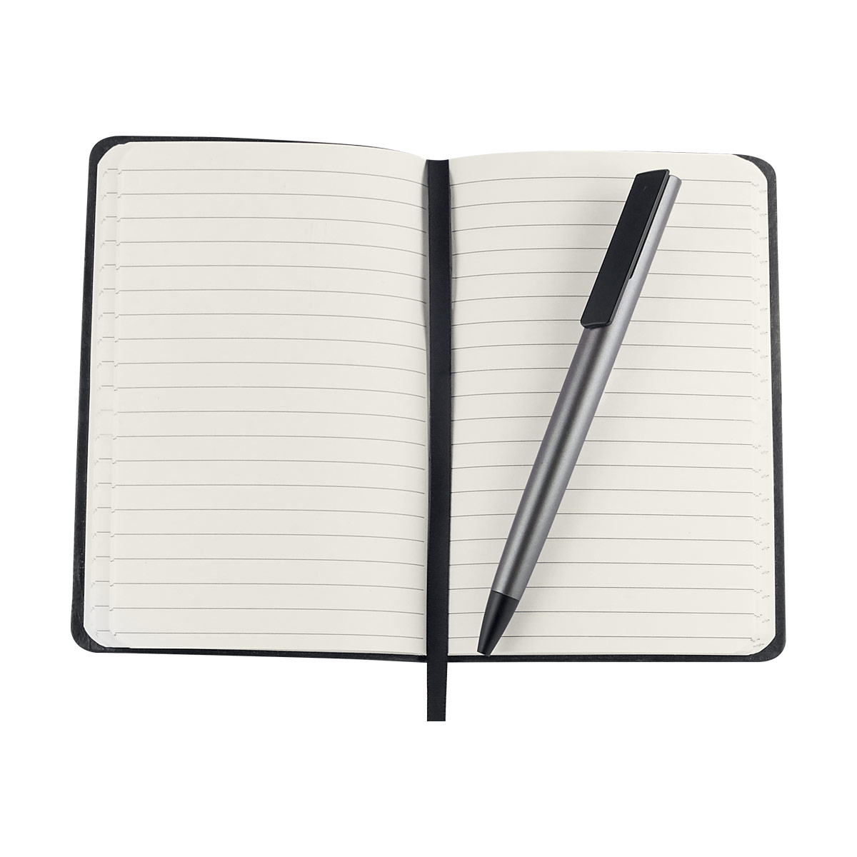 Set que incluye libreta con 80 hojas de raya y separador de hojas, bolígrafo y caja de regalo.